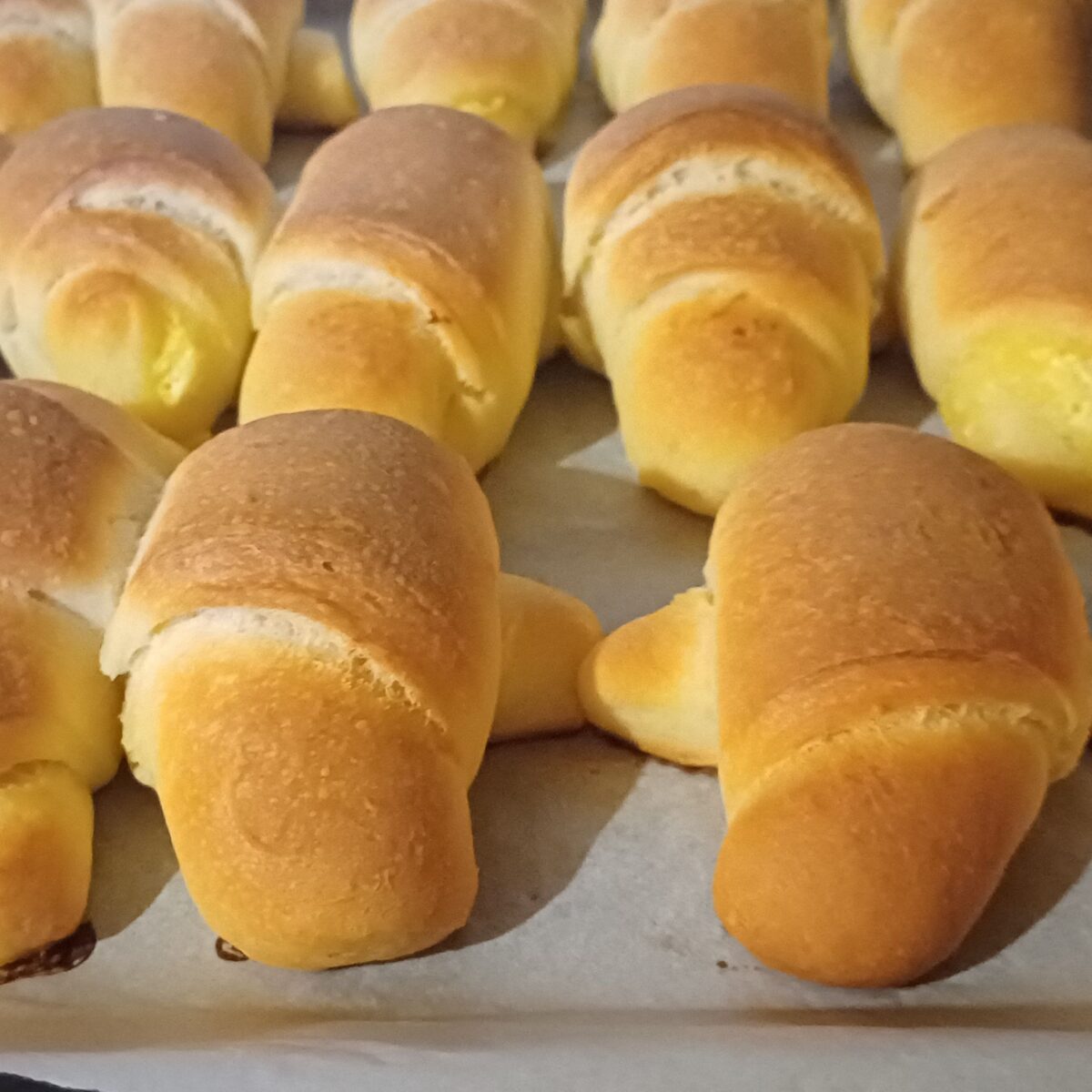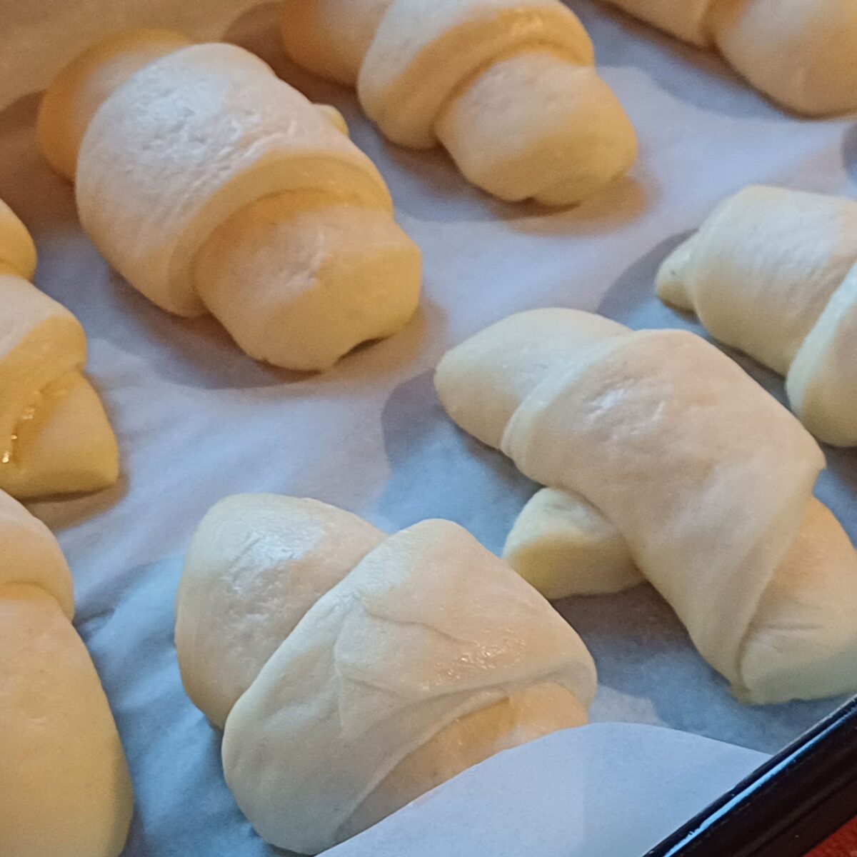 - Izvadite kiflice iz zamrzivača i poređajte ih u pleh obložen papirom za pečenje.